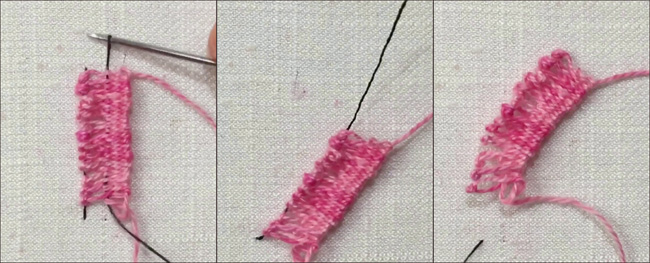 Afterward, I immediately pass my needle under the 2-millimeter stitch.